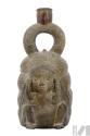 DescripciónBotella escultórica de asa estribo con representación de personaje cargando un bultoESTATUS