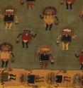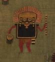 DescripciónManto con diseños bordados de figuras humanas que portan máscara, diadema y tocado, y sostienen con sus manos vara y cabeza trofeoESTATUS