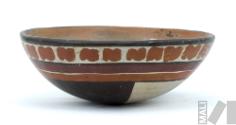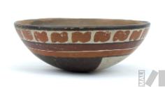 DescripciónCuenco decorado con motivos estilizados pintados, bandas y paneles de diferentes coloresESTATUS
