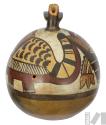 DescripciónBotella de doble pico y asa puente con diseños pintados del felino mítico rodeado de ajíes y vainasESTATUS