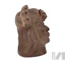 DescripciónVaso escultórico con representación de cabeza humana con orejeras y tocado serranoESTATUS