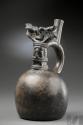 DescripciónBotella escultórica de asa estribo con representación de un prisionero muerto atado a un árbol y devorado por avesESTATUS