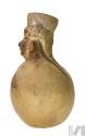 DescripciónCántaro polícromo de base llana. Escultórico de diseño antropomorfo de individuo con tocado y orejeras. Tocado con diseños geométricos lineales y circulares.ESTATUS
