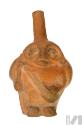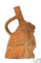DescripciónBotella de asa lateral y base llana. Escultórica representando un búho antropomorfizado que tiene un objeto en la mano derecha y cuenta con una bolsa.ESTATUS