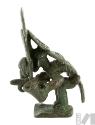 DescripciónPieza que representa a un personaje con rostro de mono que lleva puesto un tocado de doble creciente, y porta en sus manos una estólica y un keroESTATUS