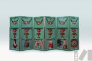 DescripciónSeis biombos de madera y bastidores de tela, cada uno dividido en tres paneles pintados tanto en el anverso como en el reverso. Dispuestos uno al lado del otro representan dieciséis (16) retratos y dos (02) escudos, con inscripciones de sus nombres. Los incas están representados de medio cuerpo, vistiendo uncu, capa, mascapaicha, y portando cetro o hacha en una mano y escudo en la otra. Uno de los retratos representa a Mama Ocllo portando un espejo radiado que asemeja a la luna. El retrato del libertador es ecuestre y viste a la usanza napoleónica. Cada panel del reverso lleva representaciones seriadas de aves y guirnaldas, jarrones con flores, escenas mitológicas (el laberinto de Creta, amorcillos en disputa, entre otros) y dioses y/o héroes mitológicos (Júpiter, Ganímedes, Urania, Aníbal y Jano). El fondo del conjunto es de color celeste.ESTATUS