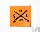 DescripciónObra en formato cuadrangular. Composición en base a representación de motivos escalonados que forman una gran X, y cabezas de aves en los lados.ESTATUS