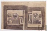 DescripciónObra de formato rectangular horizontal. Composición en base a representación de cabezas de felino geométricas.ESTATUS