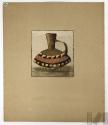 DescripciónObra en formato rectangular vertical. Composición en base a representación de cerámica prehispánica de cuello alto y asa grande, decorada con series de formas geométricas que varían entre escaleras y círculos.ESTATUS