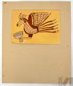 DescripciónObra en formato cuadrangular. Composición en base a representación de ave moche con decoración punteada en el pecho y vientre, cargando una vasija en sus patas de color azul y con decoracion lineal y ciruclar.ESTATUS