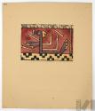 DescripciónObra en formato rectangular horizontal. Composición en base a representación de un ave con un ala extendida, con decoracion de escalones en la parte superior y en la parte inferior escalones como triángulos.ESTATUS