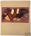 DescripciónObra en formato rectangular horizontal. Composición en base a representación de un ave de estilo nasca. Similar a un cóndor, peor con un cuello algo largo que esta encogido.ESTATUS