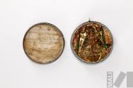 Relicario bifaz con imágenes de la Virgen de Copacabana y Santa Gertrudis