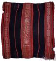 DescripciónTejido llano en fibra de alpaca con cara de urdimbre tornasol y saltas con técnica de tela doble; pampa jaspeada azul oscuro (o negro?)/morado; rayas rojo anaranjado, varios tonos de rosado, de verde, ocre; trama jaspeada negro/rosado; técnica de tela doble; bandas de tela doble cosidas en partes que corresponden a la terminación; tornasol; saltas grandes (nayra y raucana)ESTATUS