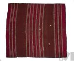 DescripciónTejido llano en fibra de alpaca con cara de urdimbre y saltas con urdimbre suplementaria flotante. Tejido de tintes naturales, pampa café/rosado; borde rojo con listita azul; otraslistitas : blanco, verde, morado; ribete rojo con filo amarilla; trama café. Pampa con diseño jaspeado; borde en SSZ; ribete tejido y saltas con motivos de casas con cerros