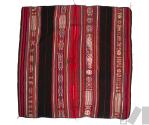 DescripciónTejido llano en fibra de alpaca con cara de urdimbre tornasol (poco pronunciado); saltas con técnica de tela doble; pampa negra; rayitas rojo, morado (claro y oscuro, vino, verde, naranja, blanco; saltas blancas sobre rayas; verde, rojo y vino; ribete vino y rojo; costura central rojo, verde, rosado, morado; trama rojo/negro; saltas grandes : nayra, raucana y letras; terminación en rayas; ribete tejido con motivos en forma de rayas; costura central de varios coloresESTATUS