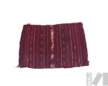 DescripciónTejido llano en fibrade alpaca con cara de urdimbre y saltas con urdimbre complementaria simple y de tres colores; pampa rosado oscuro, rayitas verde oscuro, claro, amarillo, blanco; saltas dos tonos de rosado, rosado con blanco, amarillo, verde con amarillo; ribete rosado con blanco; saltas tipo Juli (raucana, pichjalla, nayra) y salta de 3 colores; forma trapezoide; ribete tejido tipo flechadoESTATUS