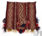 DescripciónTejido llano con cara de urdimbre y saltas con urdimbre complementaria simple; rayas rosado oscuro, claro, azul, blanco, verde, morado; saltas rosado oscuro, verde, morado con blanco; ribete morado; flecos azul, rosado oscuro, morado, verde, saltas geométricas grandes (variaciones de nayra, raucana) diferentes en cada cara; tiene flecos, ribete tejido, y bolsita encimaESTATUS