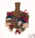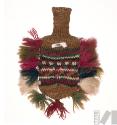 DescripciónTejido a palos en fibra de alpaca y vicuña; fondo de vicuña y rayas azul, rosado, verde, blanco; flecos de los mismos colores; bolsita encima de una cara