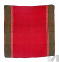 DescripciónTejido llano en fibra de alpaca con cara de urdimbre y saltas con urdimbre suplementaria flotante; pampa rojo anaranjado; borde raya del color de la pampa y banda verde; saltas verde con blanco, y rojo anaranjado con blanco; ribete verde; trama rosado, fleco verde en una esquina; ribete tejidoESTATUS