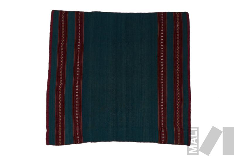 DescripciónTejido llano en fibre de alpaca con cara de urdimbre y saltas en qopi, urdimbre complementaria compuesta de 3 colores o suplementarias; pampa celeste (muy raro); borde rojo; rayitas rojo y verde; saltas qopi: rosado café, rojo; saltas con motivo de cruces: celeste, blanco, rojo y morado, amarillo y blanco; trama negra; ribete rojo y blanco; pampa en SSZ, rayitas amarillas en Z, qopi : rojo en Z; hilo rojo intercalado en la parte de abajo; ribete cosido; ribete cosido con motivos de ojos y una parte en zigzag