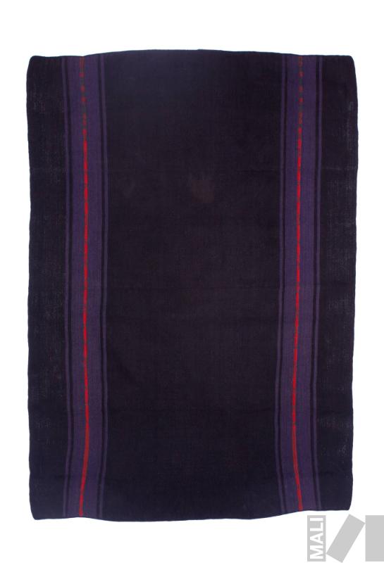 DescripciónTejido llano en fibra de alpaca con cara de urdimbre y saltas con urdimbre complementaria simple; pampa negra; saltas rojo, verde y morado; rayas moradas; ribete jaspeado morado/negro; trama negra; bandas en los costados en SZ; ribete cosido