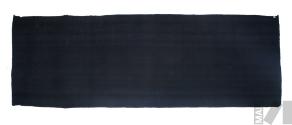 DescripciónTejido llano en fibra de alpaca con cara de urdimbre; pampa morada, trama negro, ribete morado, polos de color rojo; marcas de pliegues; ribete en lo que corresponde a la
