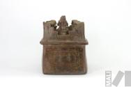Botella con representación de guerreros sobre estructura arquitectónica
