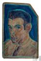 DescripciónObra de formato rectangular vertical. Composición en base a busto de personaje masculino en tres cuartos a la izquierda. Tiene el cabello marrón peinado hacia atrás, ceño fruncido y mirada al espectador. Viste con camisa rosada y corbata rojaESTATUS