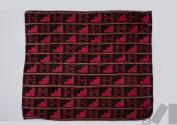 DescripciónUrdimbres de algodón y tramas en fibra de camélido en técnica cara de trama, tapiz cola de milano y tapiz enlazado para los diseños. Manta o lliclla de campo oscuro con diez secuencias horizontales de motivos escalonados y en forma de "H" intercalados en color rojo, con intersticio en banda listada de color.ESTATUS