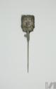 DescripciónPrendedor en forma de agua, remate rectangular que inscribe formato similar de menor dimensión, borde de forma foliar, su campo central presenta diseño de volutas en puntillismocon rosetones equidistantes, sostenido por un calado compuesto por rosetones y rocallas. En la base diseño foliar con argolla lateral. Vástago tubular de terminación aguda.ESTATUS