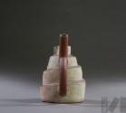 Botella escultórica que representa una pirámide escalonada con acceso en rampa