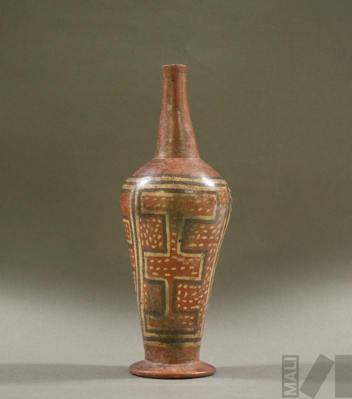 Botella con motivos estilizados de cabezas de serpientes