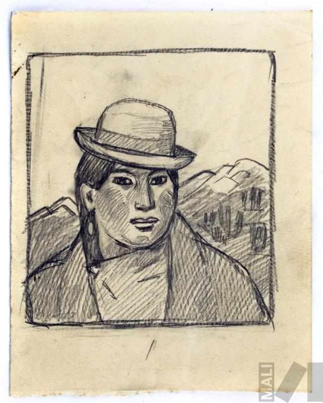 Mujer indígena, estudio para xilografía
