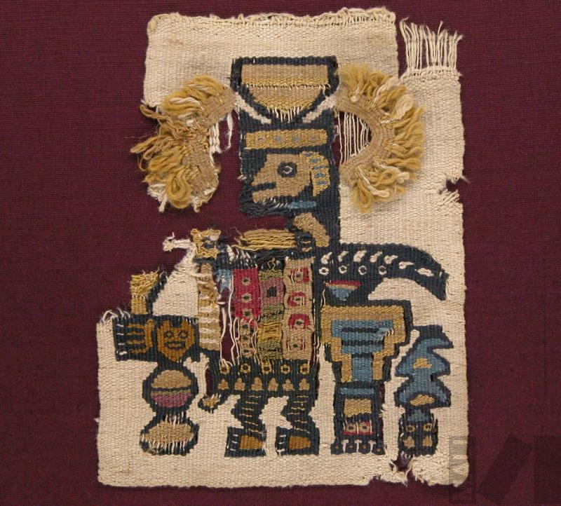 Fragmento de paño polícromo con diseños de personajes antropomorfos