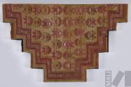 DescripciónTaparrabo en forma de trapecio escalonado con motivos de figuras humanas que portan tocados de media luna, orejeras y taparrabos. En la zona escalonada se disponen bandas que siguen la forma del textil. Una de estas bandas presenta diseños de avesESTATUS